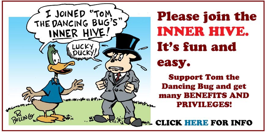 Please sign up for the Tom the Dancing Bug subscription service, the Inner Hive, and join the team that supports Tom the Dancing Bug’s very existence. Joining HERE is easy and fun.